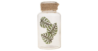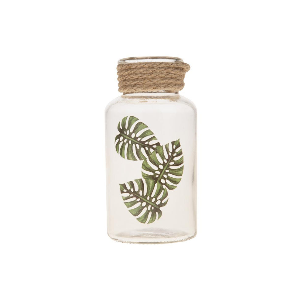 Glasflasche mit Blattdruck 8x8x16,5cm Grün