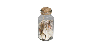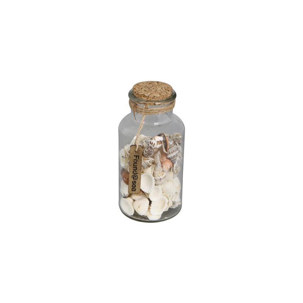 Glass bottle with shells 8.2x8.2x17cm Natural