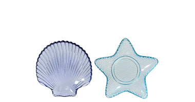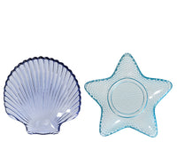 Glazen bord Schelp/Zeester assortie blauw D14 H2cm