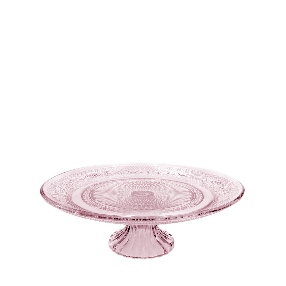 Glazen taartplateau met voetstuk Ø18xH7,5cm roze