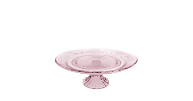 Glazen taartplateau met voetstuk Ø23xH8cm roze