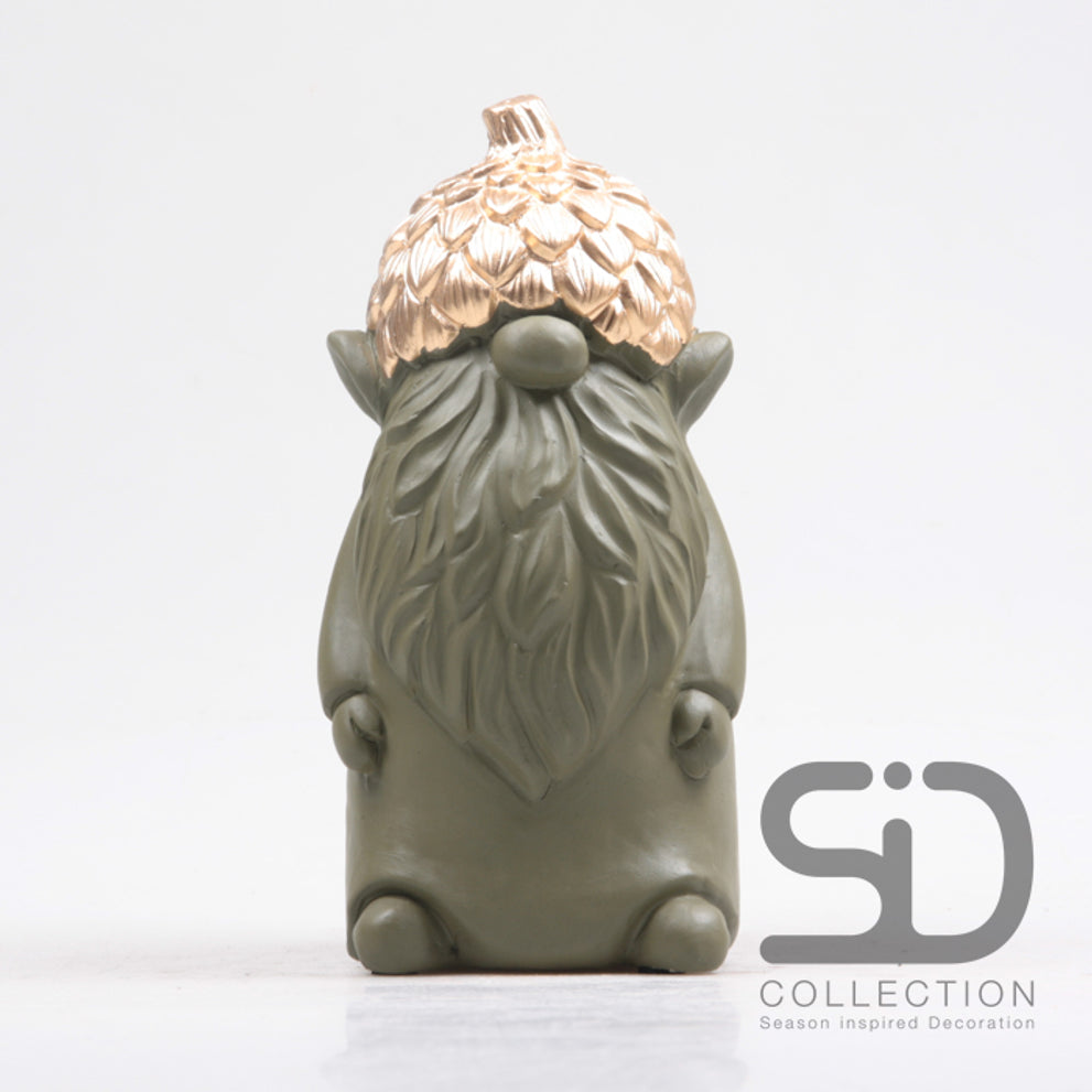 GNOME MET EIKEL CEMENT 12X11.5X23.5 CM OLIJFGROEN