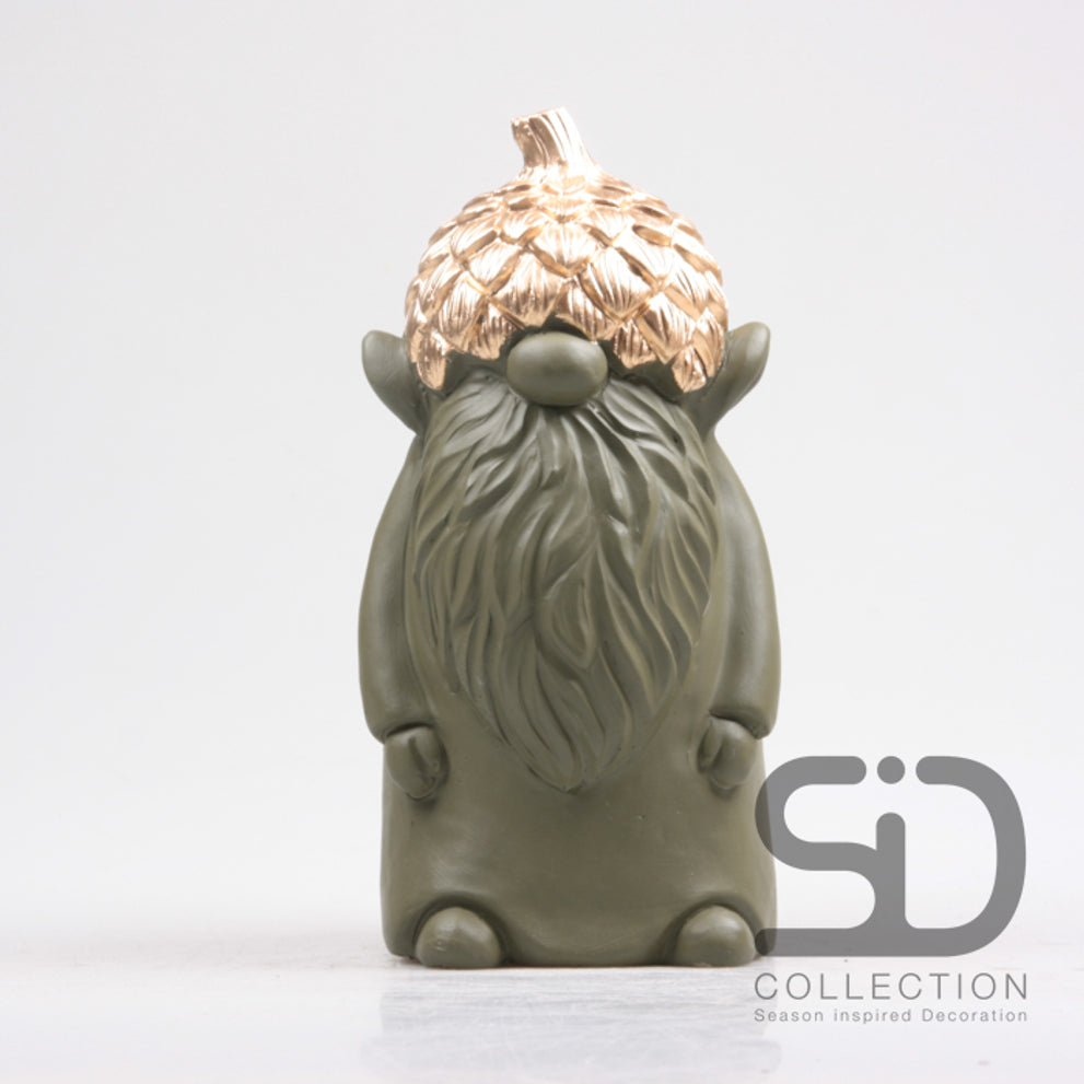 GNOME MET EIKEL CEMENT 15X14.5X29.7 CM OLIJFGROEN