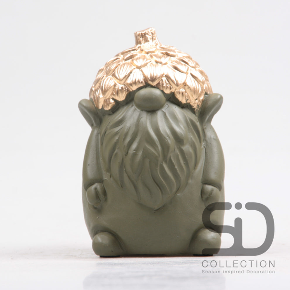 GNOME MET EIKEL CEMENT 9.5X9X14.3 CM OLIJFGROEN