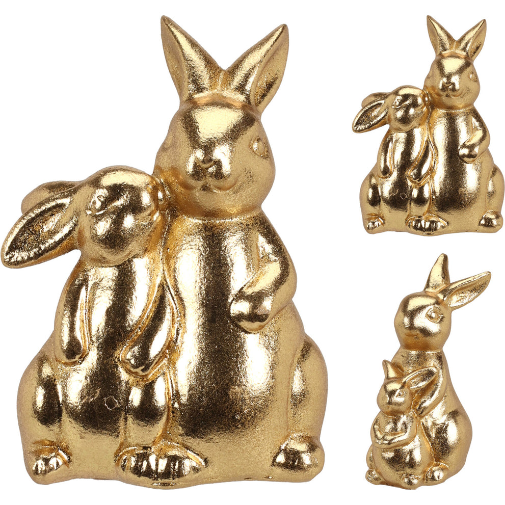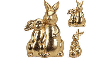 HASE MIT KIND POLY 11X8X12CM GOLD 2 SORTIERT