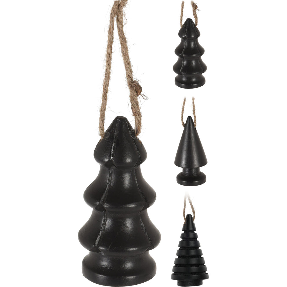 Hängedeko Weihnachtsbaum Mangoholz D4,5 H9,5cm Schwarz 3er Set
