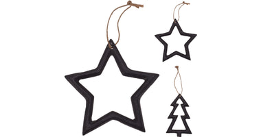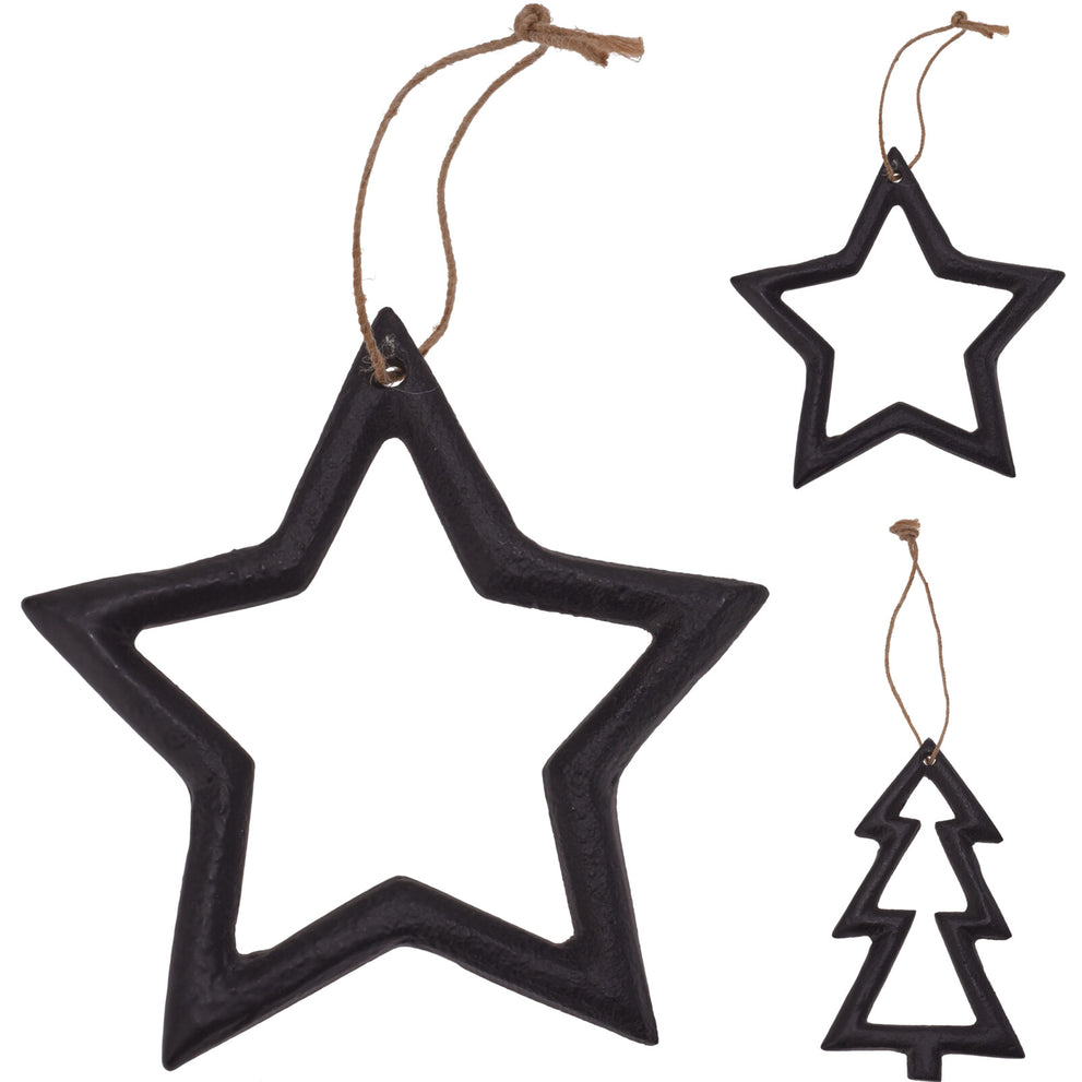 HÄNGENDE DEKO ALUMINIUM BAUM UND STERN SORTIERT SCHWARZ 10CM