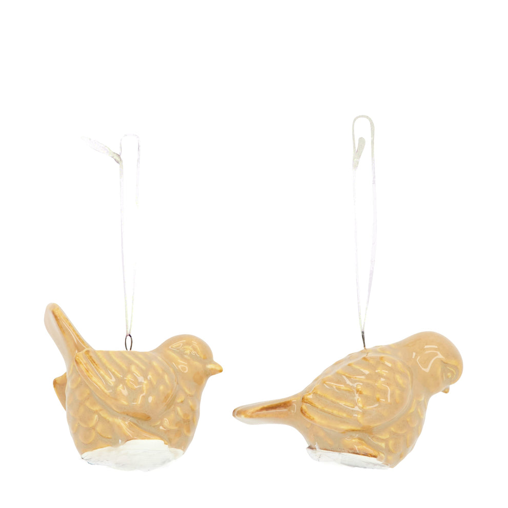 Hanger bird ceramic 6x5x5.5cm Mixed Light brown