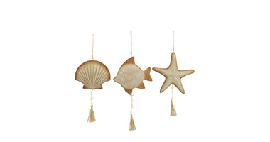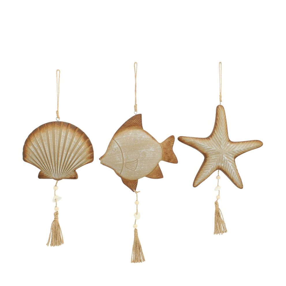 Anhänger Fisch, Muschel, Seestern mdf 16x2.2x15cm 3 assorti Natur