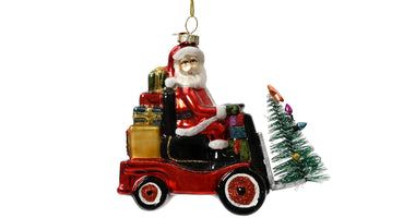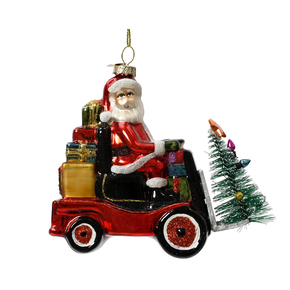 Anhänger Weihnachtsmann auf Gabelstapler Glas 4.5x11.5x12cm