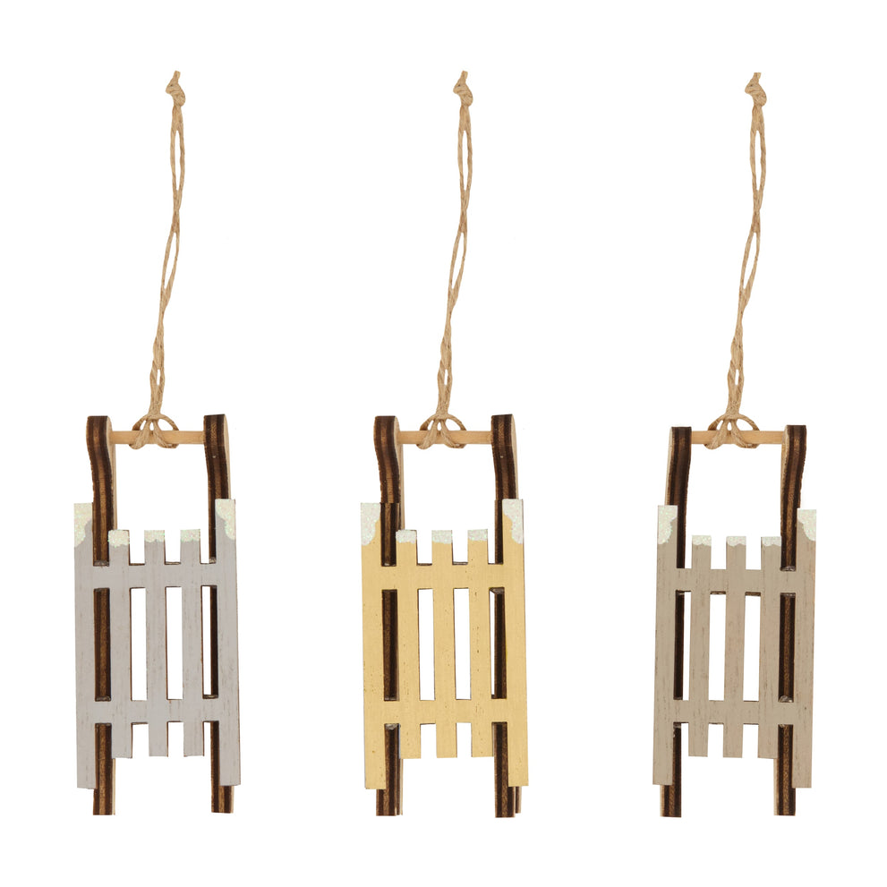 Hanger sleigh plywood 9x3.6x2.2cm 3pcs mixed