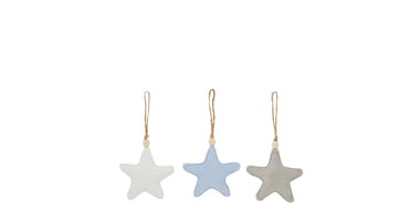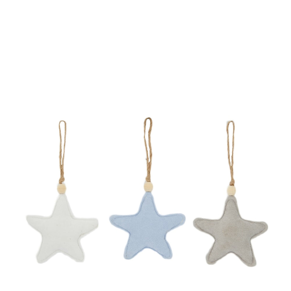 Aufhänger Stern Stoff 13x13x4cm 3 Blau Mix