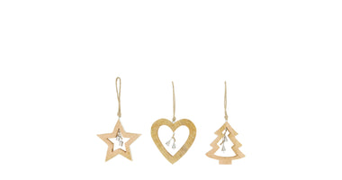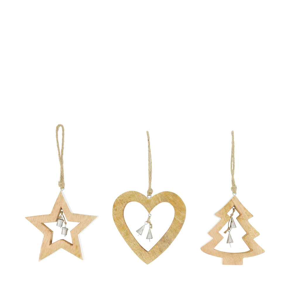 Hanger star tree heart mango wood 15x1.5x15cm Mixed White/Natural