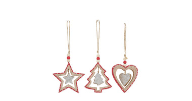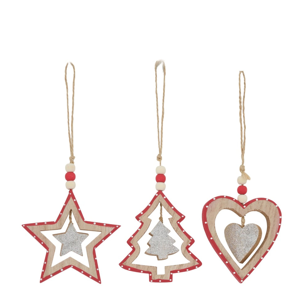 Hänger Baum, Herz, Stern mdf 9x8,5x1cm 3 mix Rot FSC 100%
