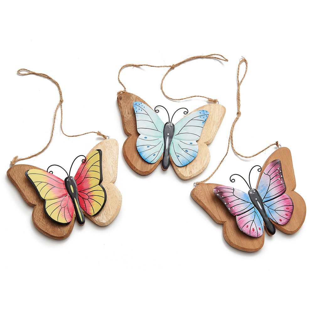 Holzanhänger Schmetterling 'Yara', 3er-Set, ca. 18x13cm