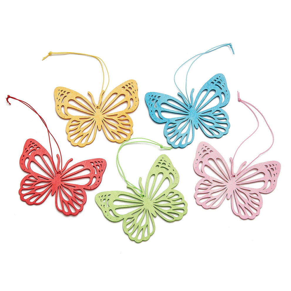 Holzanhänger Schmetterling 'Zahra', 5 verschiedene Designs, 10 cm - 4er-Pack