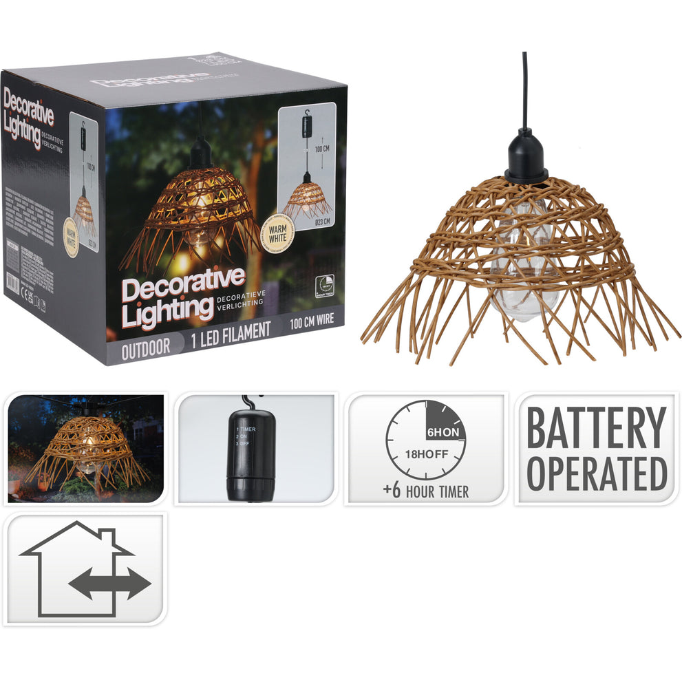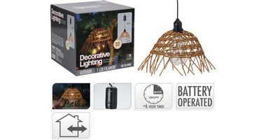 Hängeleuchte aus Rattan, Ø 23 cm, H 19 cm (exkl. 4 x AA Batterien)