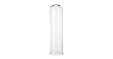 Hella Glasglocke auf weißem Teller - H71,5 x D21 cm