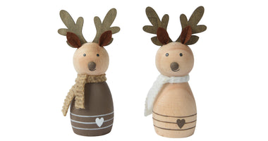 Hirsch aus Holz, stehend, 2 Farben sortiert, D3,5 H10,5cm