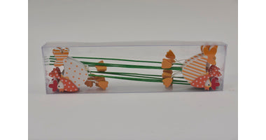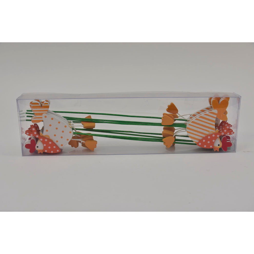 Holz Hühner auf Stock Orange 7x6cm - 8 Stück