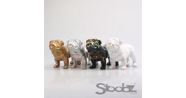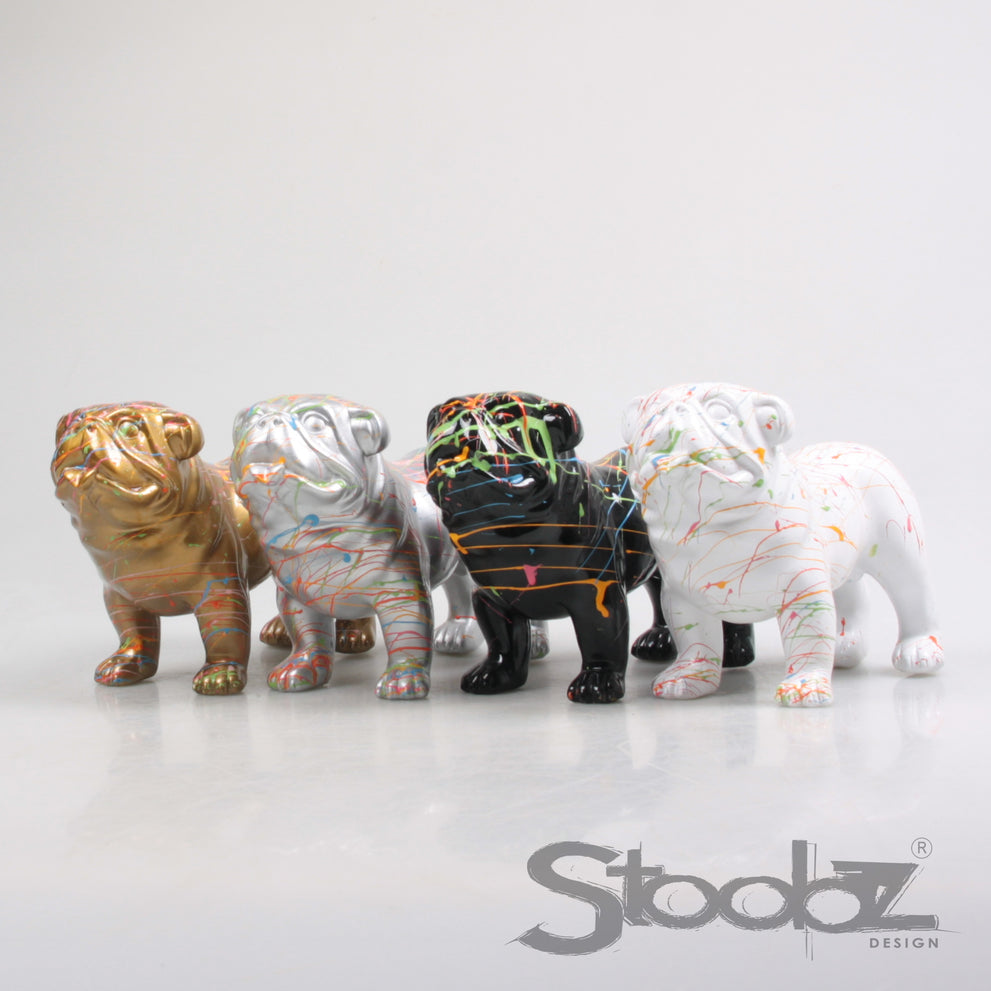 Hund, Englische Bulldogge, Stoobz, 4er-Set, schwarz/weiß/schwarz/grau, Spray, 18 cm