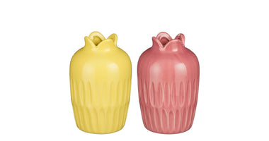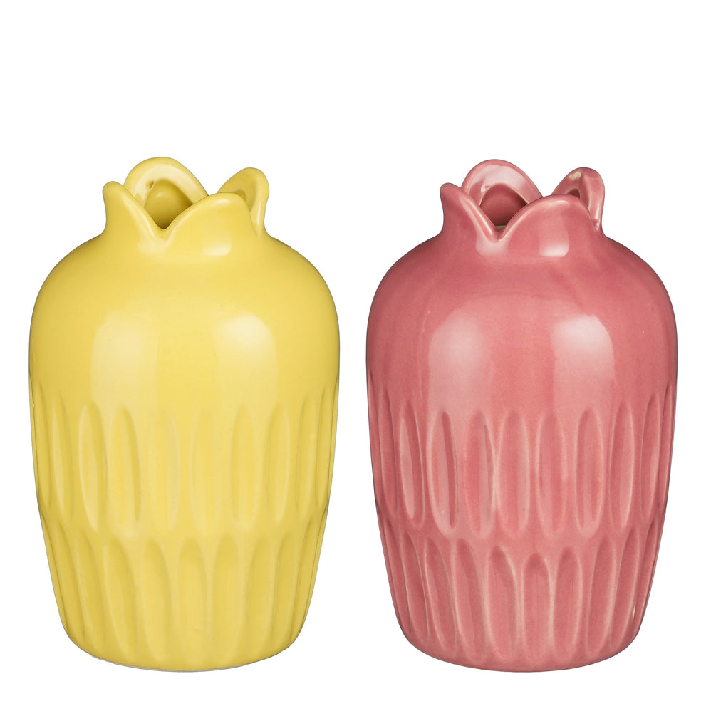 Ivon Vase gelb-rosa 2er Set - H14 x D9,5 cm