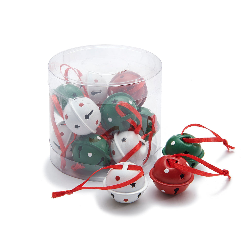 Weihnachtsglöckchen-Anhänger 3cm rot/weiß/grün 12 Stück