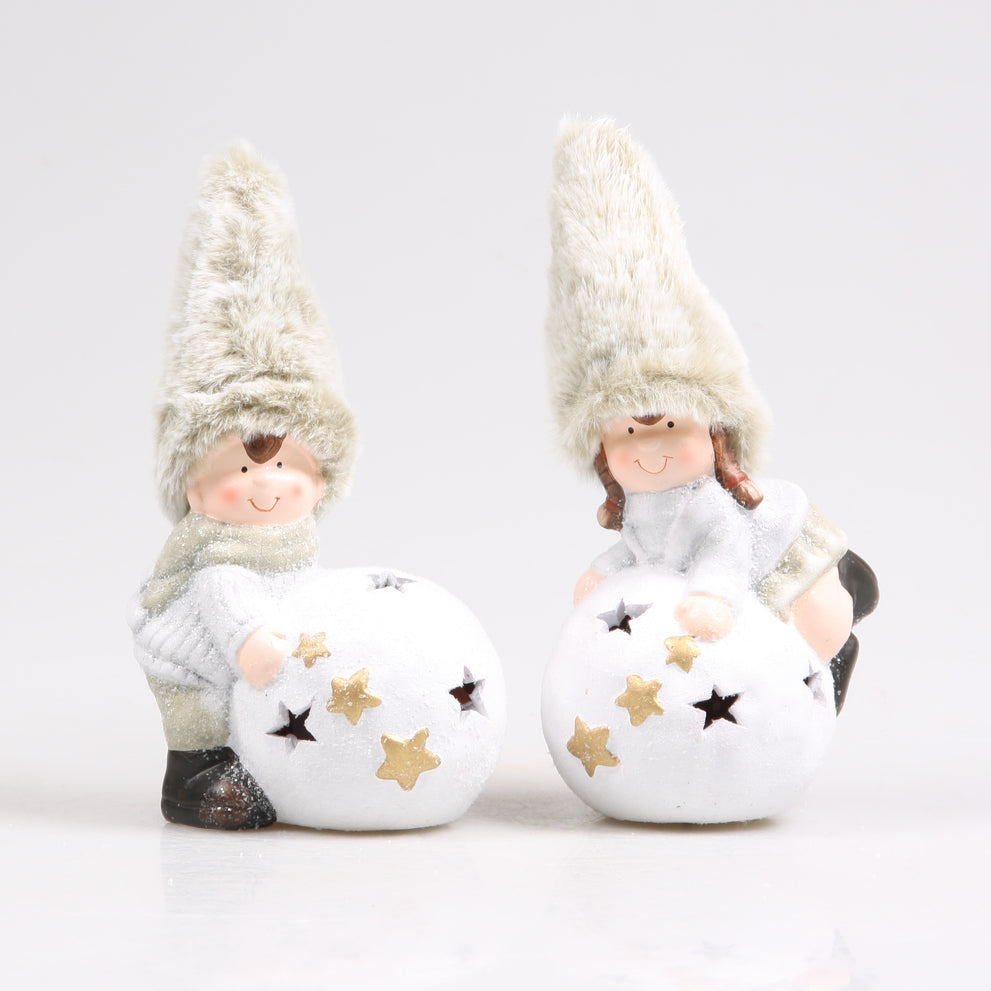 JUNGE UND MÄDCHEN AUF SCHNEEBALL GRÜN 25 CM KERAMIKSORTIMENT - EINZELN