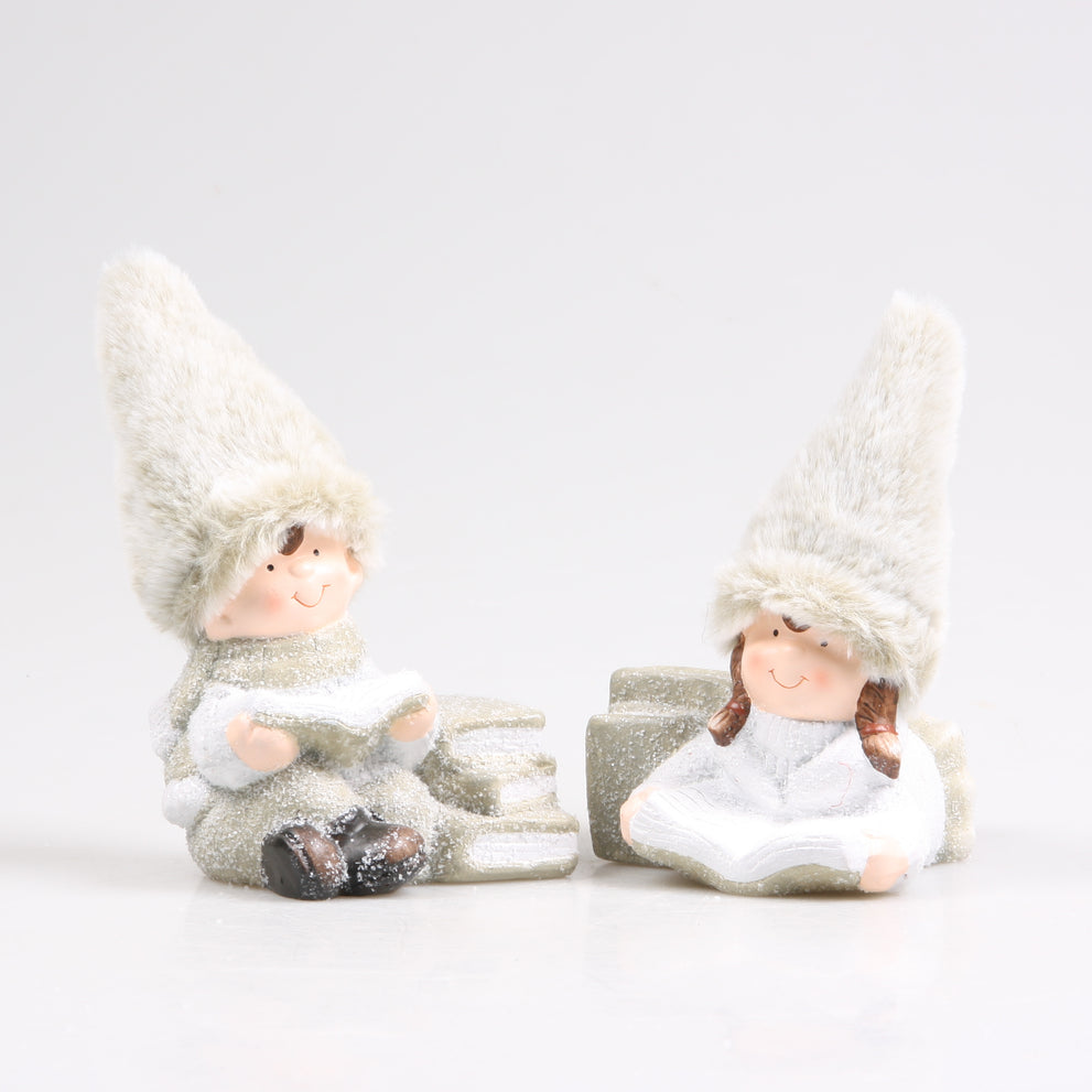 JUNGE UND MÄDCHEN LESEN GRÜN 13,5X13X13 CM KERAMIK SORTIMENT - PRO STÜCK
