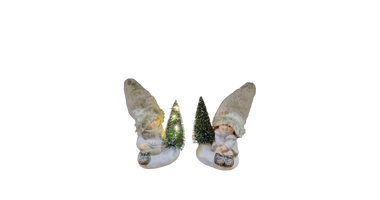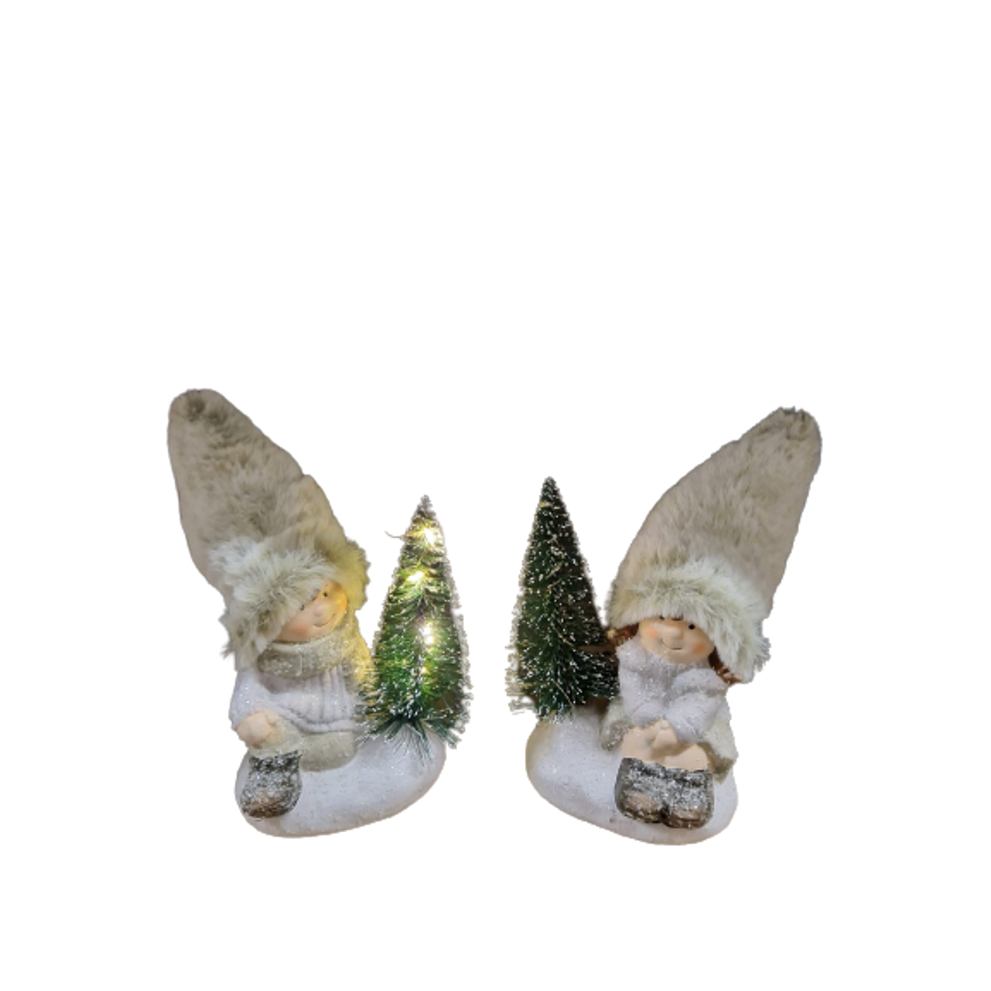 JUNGE UND MÄDCHEN WEIHNACHTSBAUM M/LED GRÜN 9,5X7X15 CM KERAMIK SORTIMENT - PRO STÜCK