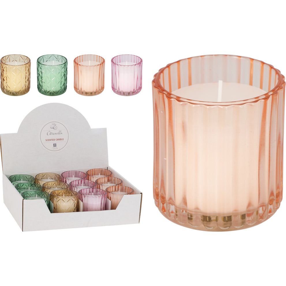 CITRONELLA-KERZE IM RIPPELGLAS, 4ER-SET, DURCHMESSER 8,5 CM, HÖHE 10 CM