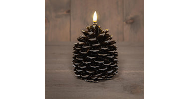 LED-Kerze mit Tannenzapfen-Motiv, 3D-Flamme, batteriebetrieben, mit Timer, 12,5 x 10,5 cm, braun