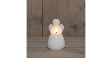 LED-Kerze Engel aus Wachs mit 3D-Flamme, batteriebetrieben, mit Timer, D8,5 x H14,5 cm, weiß