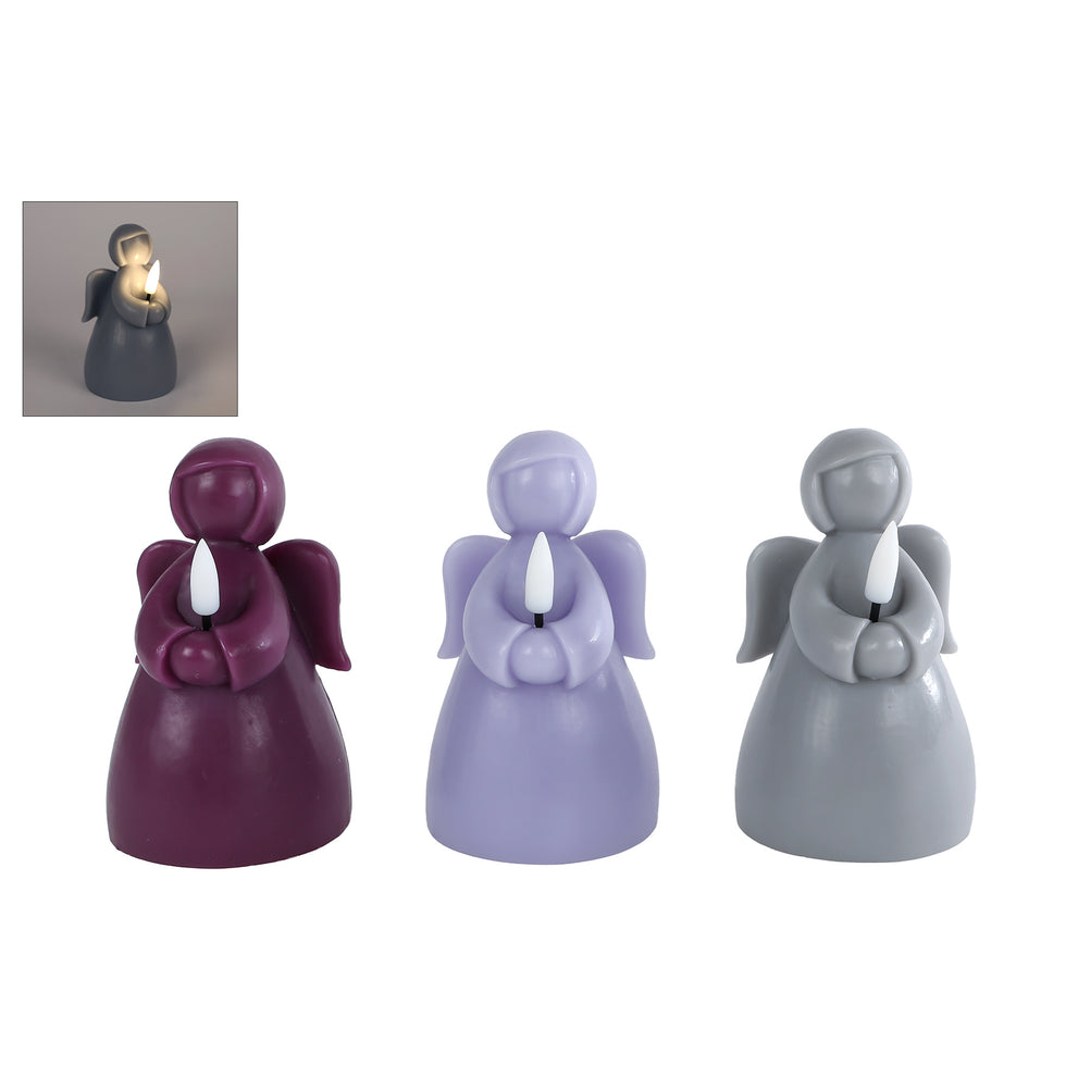 Kaars LED "Engel" lila/paars/zilver a3 2xAAAex 7x7x12cm