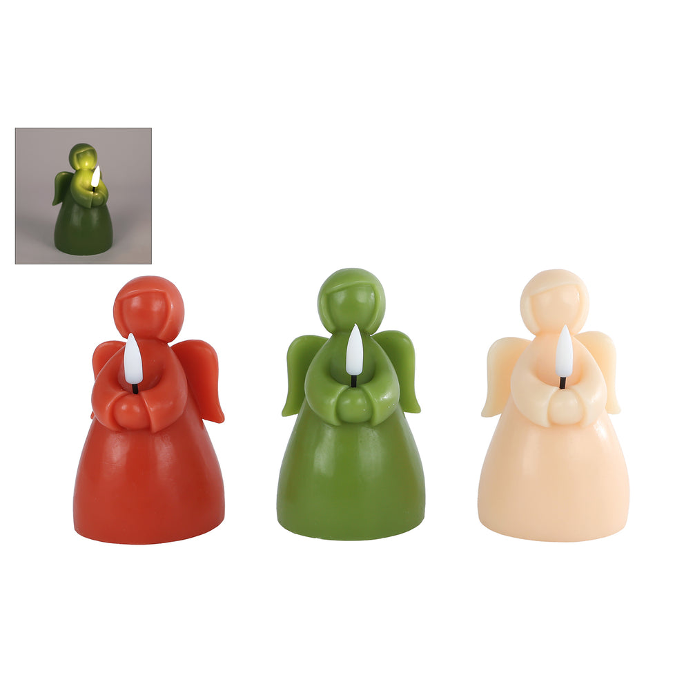 Kaars LED "Engel" oranje/groen/grijs a3 2xAAAex 7x7x12cm