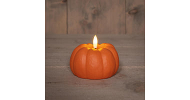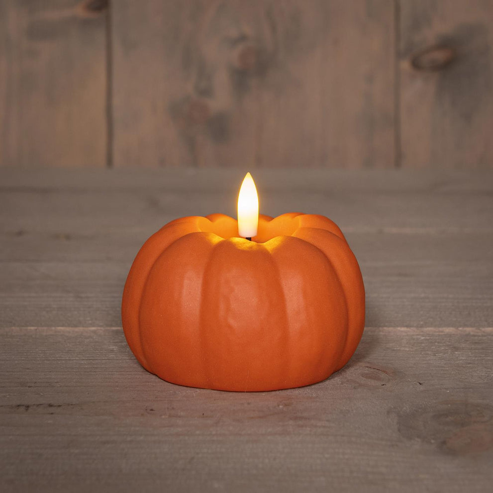 KAARS POMPOEN LED 3D VLAM OP BATTERIJ MET TIMER 6X10CM ORANJE