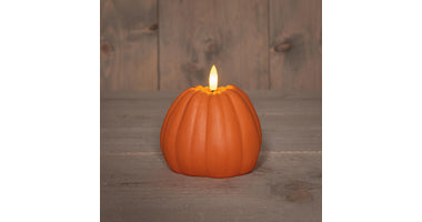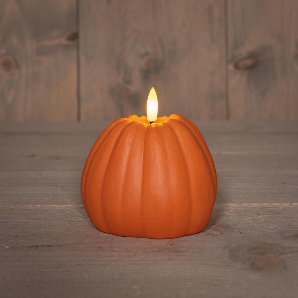 LED-Kürbiskerze mit 3D-Flamme, batteriebetrieben, mit Timer, 8,5 x 11 cm, orange