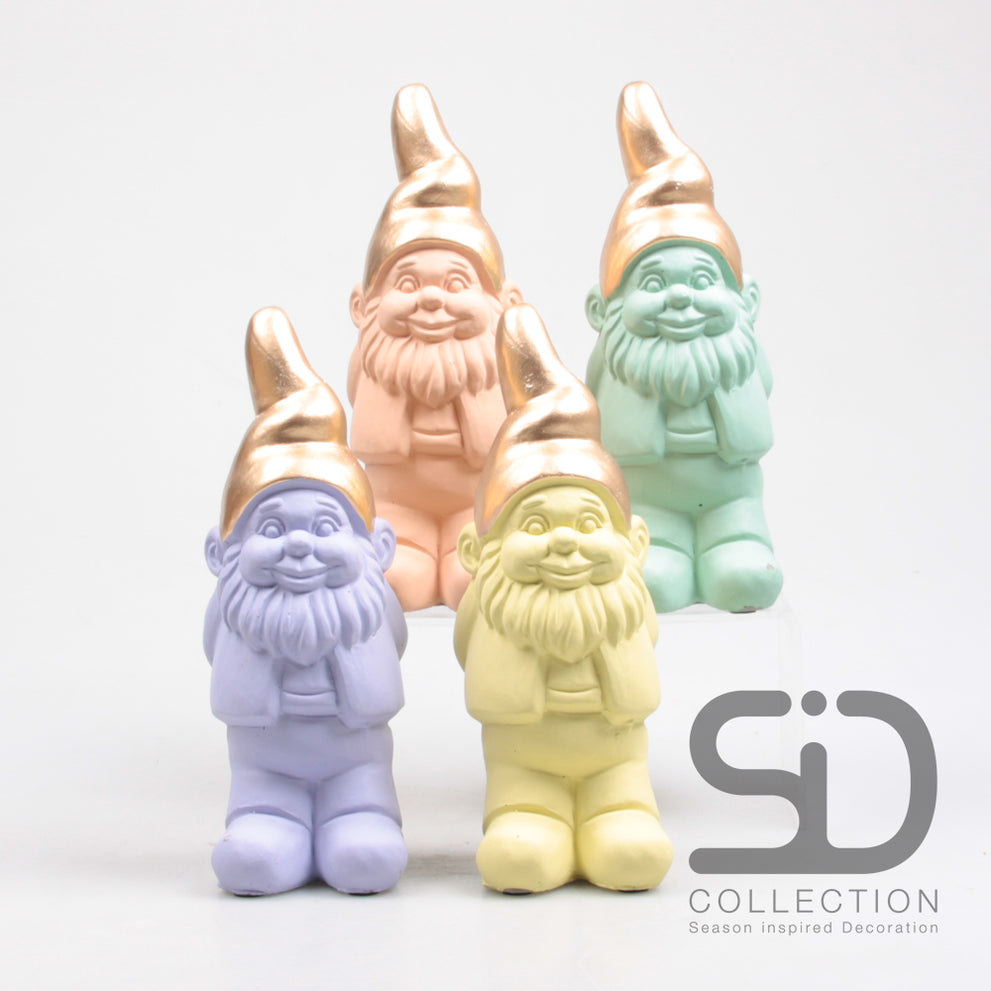 ZWERG MIT GOLDENER MÜTZE 8,8X9,2X23,8 CM 4 KLR ASS.