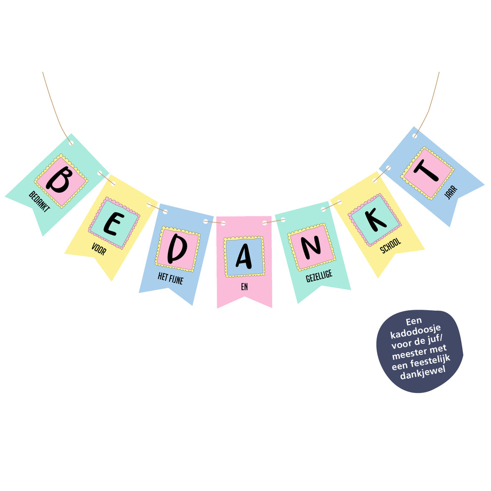 Kadodoosje vlaggetjes slinger 'bedankt schooljaar'
