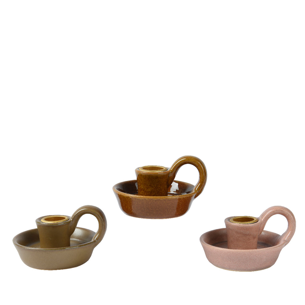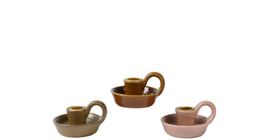 Porzellan-Kerzenhalter + Henkel 9,5x8,5x6cm rosa/taupe/terracotta 3er-Set