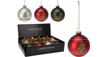 Weihnachtskugel aus Glas, Baumform, Ø 8 cm, 3er-Set, verschiedene Farben