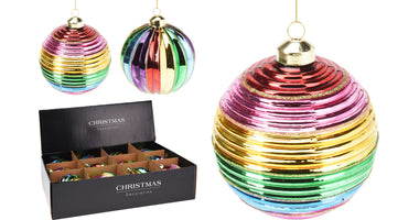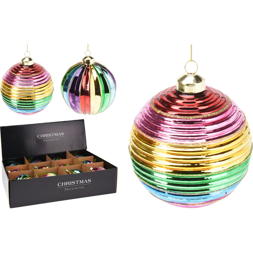 Weihnachtskugel aus Glas, Ø 10 cm, mehrfarbig gestreift, 2er-Set