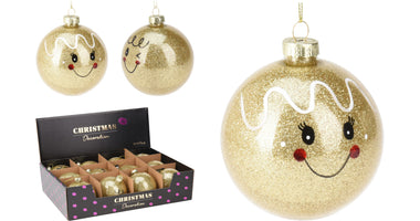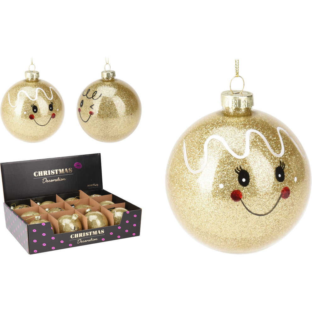 Weihnachtskugel aus Glas, Ø 8 cm, Gesicht, Gold, 2er-Set, sortiertes Design