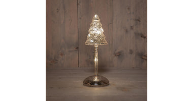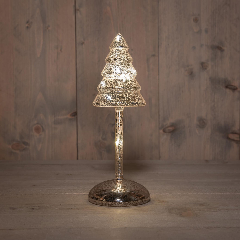 Weihnachtsbaum auf Stamm, Glas, LED, batteriebetrieben, mit Timer, H25,5 cm, silber