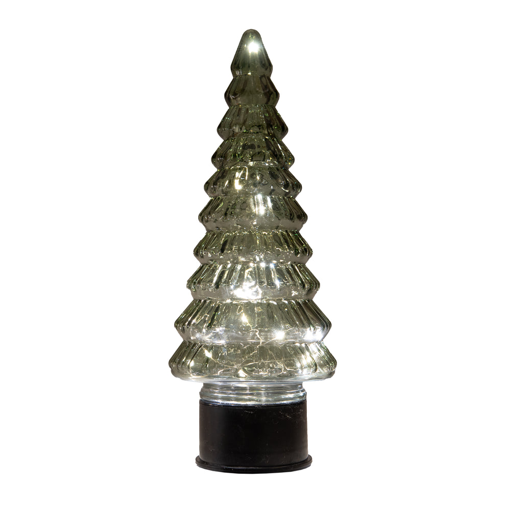 Weihnachtsbaum aus Glas, drehbar, mit 20 LEDs, 3xAA Batterien, mit Timer, 13 x 35 cm, grün.