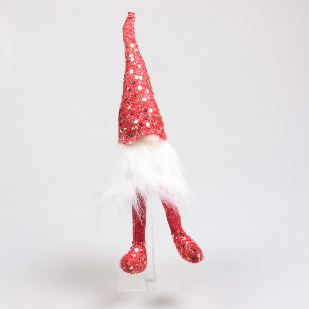 Weihnachtswichtel mit Pailletten-Bummelbeinchen 12x10x42 cm Rot
