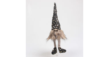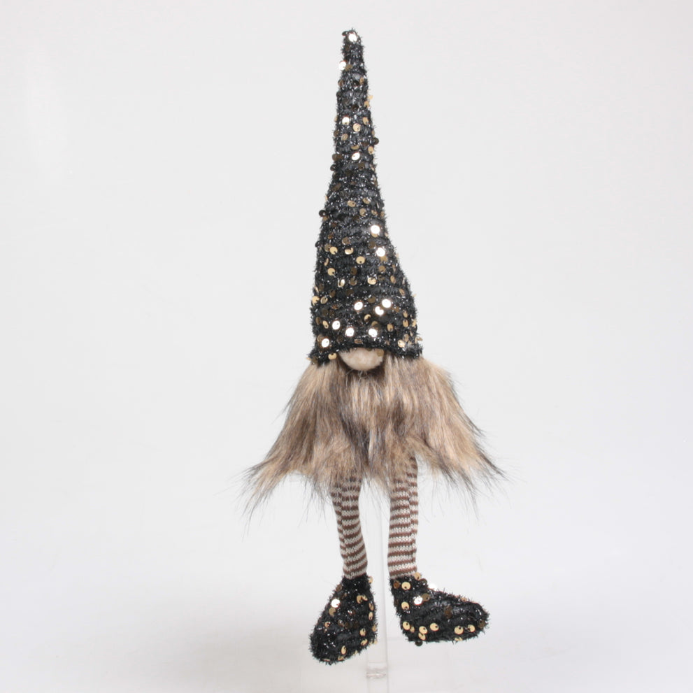 Weihnachtswichtel mit Pailletten-Bummelbeinchen 12x10x42 cm Schwarz