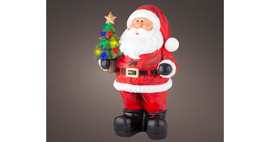 Weihnachtsmann aus Polyresin mit LED-Lichtern, mehrfarbig, 34x42x63cm