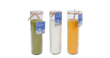 Kerze "Seed of Life" weiß/gelb/grün 3fach sortiert Glas/Wachs 5x5cm