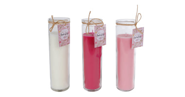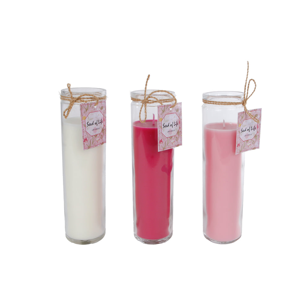 Kerze "Seed of Life" weiß/rosa/fuchsia 3fach sortiert Glas/Wachs 5x5cm
